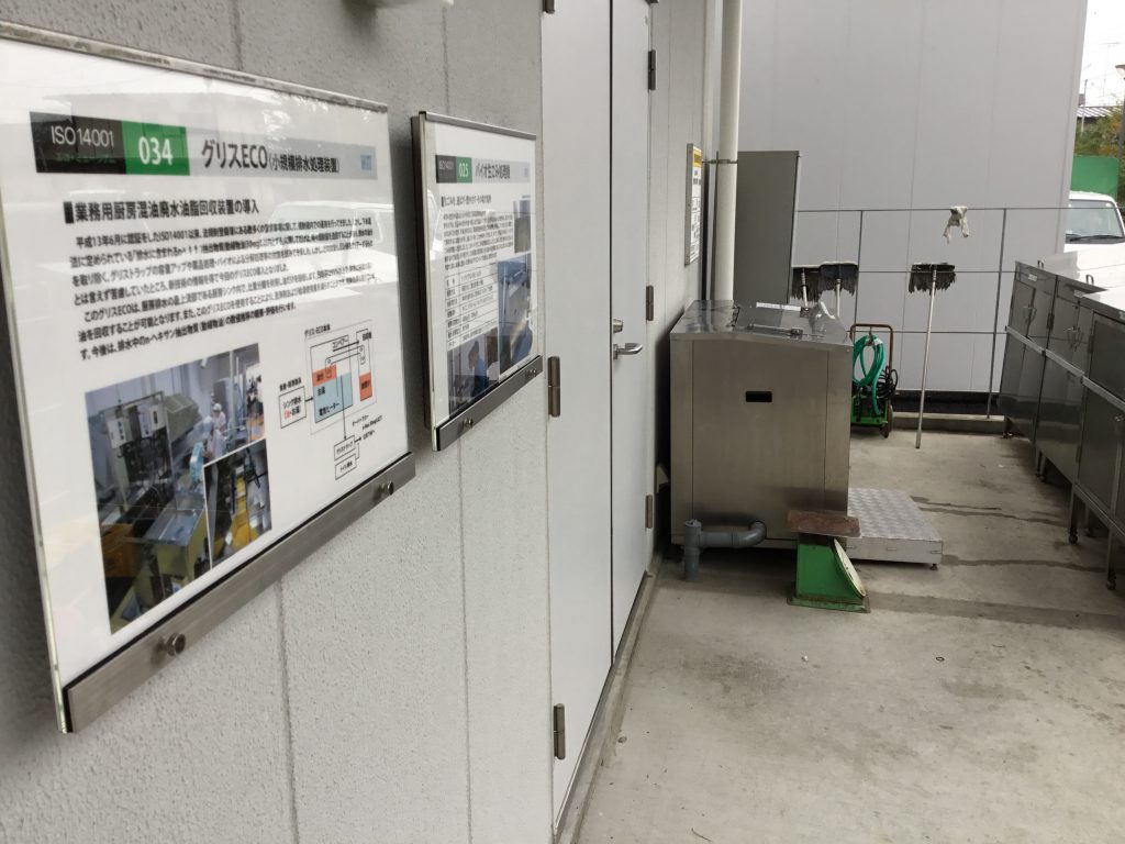環境に力を入れている日本工業大学様。日々発生する食品残渣を生分解処理しています。(取り組みをパネルでご紹介いただいてます)