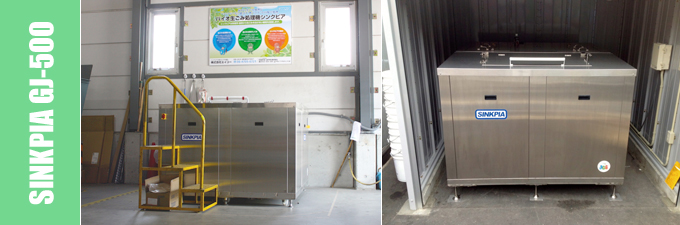 業務用生ごみ処理機 SINKPIA GJ-500。最大級の力を、最小限の形に。つまり、業界最小サイズ。
